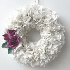 リースのサイズは直径約18cm程です。アクセントに付けたサテンの長いリボンは約30cm程です。