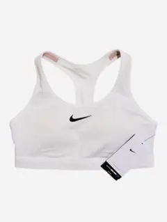 DRI-FIT素材のグレーのスポーツブラ、クロスバックデザインで快適なフィット感。