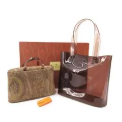 希少品 美品 エトロ トートバッグ ペイズリー マルチカラー ステッチ PVC