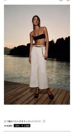 ZARAハイウエストベルト付ワイドパンツ