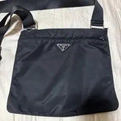 高級感あふれるブラックレザーのショルダーバッグ、2本のストラップ付き。
