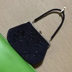 昭和レトロ 手編み風 ハンドバッグ 花柄 黒 ニット風バッグ
