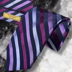 ネイビー地にブルーとパープルのストライプ、シルク製の高級ネクタイ。