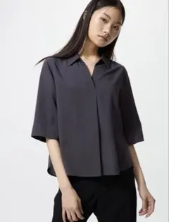 値下げUniqlo U シアーコットンダークグリーン ストライプ 半袖シャツ L