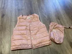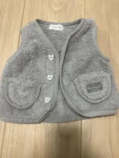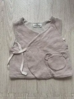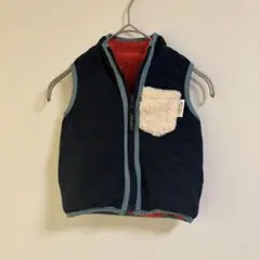 緑色と青色の鳥柄ベビーベスト、フリース素材で暖かい。