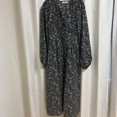 黒地に白い花柄のフリル付きワンピース、ポリエステル100%で快適な着心地。