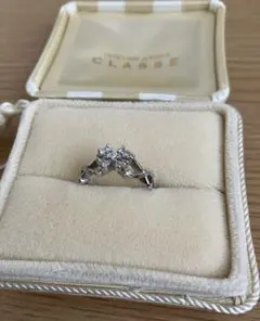 プラチナの白く優しい光沢と、繊細にあしらわれたダイヤモンドが豪華な煌めきを放つリング。