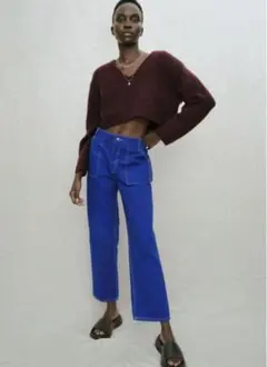 ZARA vネックニット バーガンディ モヘア クロップド丈 ザラ
