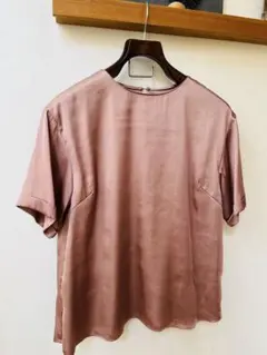 滑らかでストレッチの効いた上品な生地感で、Tシャツ感覚で着られるのにブラウスのような「ちゅるん」としたツヤ感があります。