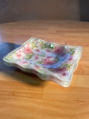 渦巻をデザインカットしたガラスで、レトロポップな角皿です。