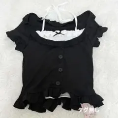 SHEIN MOD ウィメンズ ブラック ニットリボン装飾ブラウストップ かわいいTシャツ しーいん スナ系 量産 地雷 リボン付き