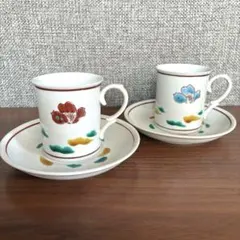 カラフルな花柄の陶器製カップとソーサー5個セット。