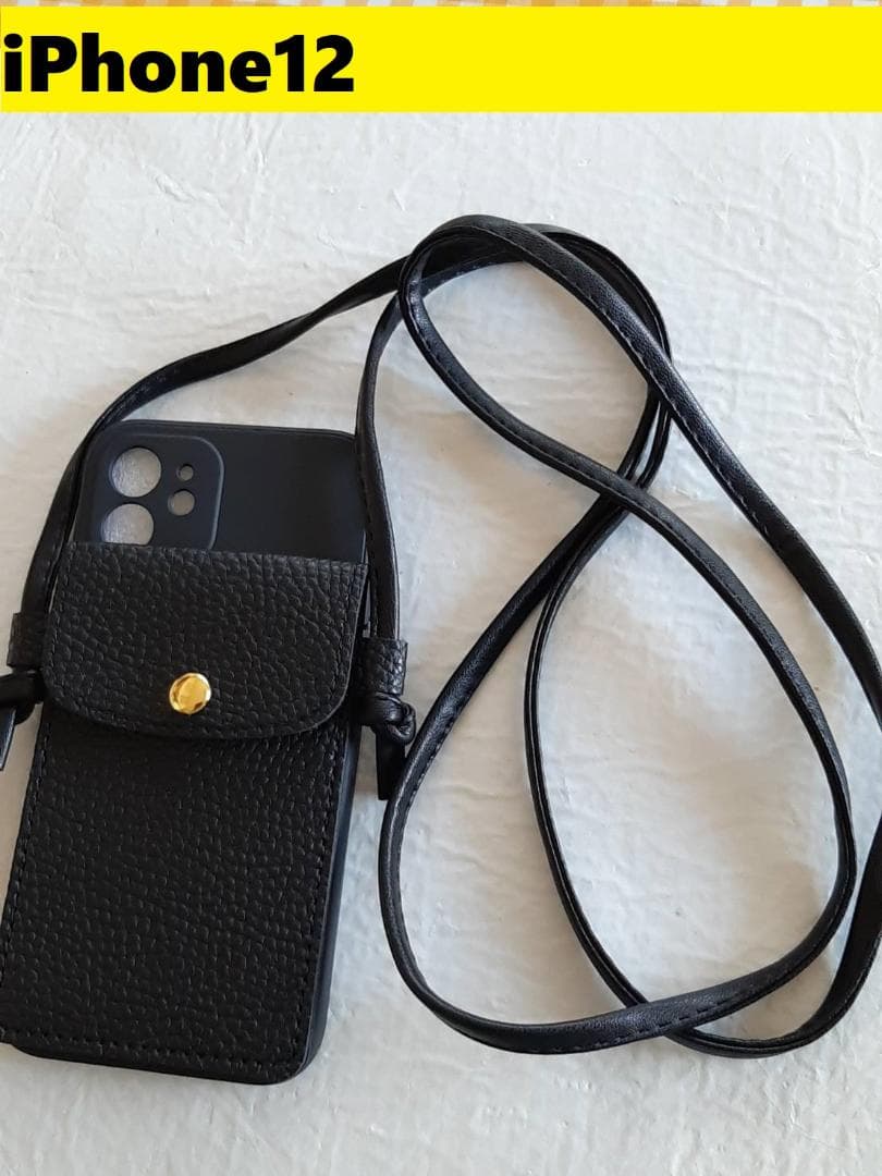 iPhone12☆カード入れ レザーショルダー 黒♡♡♡♡♡