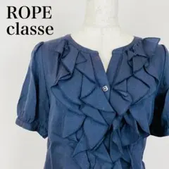 ネイビーとホワイトのツイード生地を使用したショートスリーブのトップス、ポケット付きで背中のリボンのジップがポイントです。