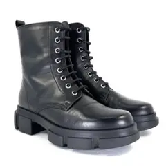 ヒール4.5cmで、ボリュームのあるソールでスタイルアップが叶うコンバットブーツは、脚を綺麗に見せてくれます。