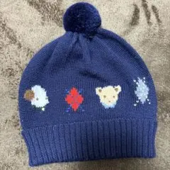 familiar ファミリア ニット帽 チェック柄 ポンポン ウール
