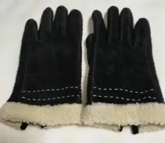 スエード素材のベージュ手袋、内側ファー付きで暖かいです。