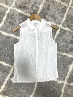 花柄デザインのノースリーブシャツ、軽やかなポリエステル素材。