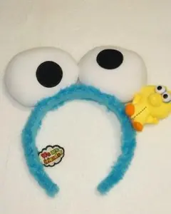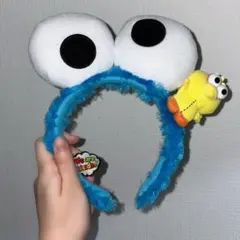 青色のクッキーモンスターカチューシャに、黄色のぬいぐるみが付属。