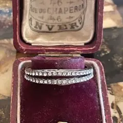 金属部分は素材不明。刻印無し。石はラインストーン。日本サイズで19号です。