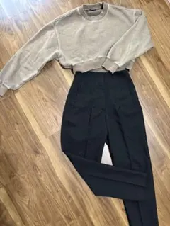 タンクトップはSサイズ、ワイドパンツはMサイズでウエストはゴム、シワにらなずに着やすいです。
