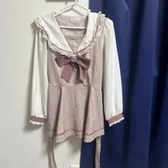 セーラー襟とリボンが特徴のネイビーとホワイトのセットアップ。