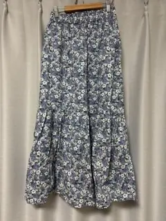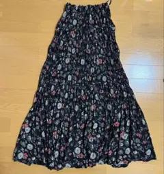 ホワイトとブラックの花柄デザイン、サイズ36のフレアスカート。