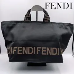 FENDI ミニトートバッグ キャンパス 総柄 FFロゴ シルバー金具 ロゴプレート ロゴ刻印