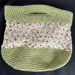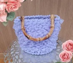 手編み かぎ針編み 花モチーフ付き ハンドバッグ 一本手 かごバッグ