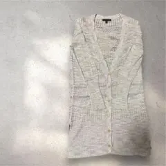 ニットとスウェットの混合素材。サイドポケットとフロントボタン付き。