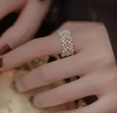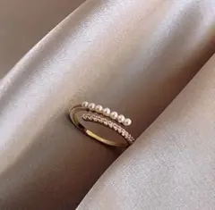 パールが輝くゴールドの指輪は指先を華やかに見せてくれます