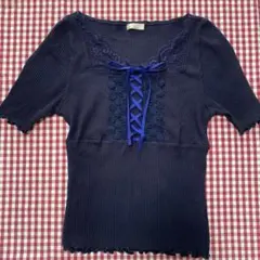 薄紫 フリル袖 バラ刺繍 Tシャツ