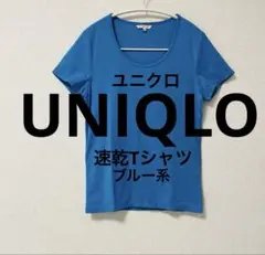 ユニクロ 【M】 プリントᎢシャツ Uネック 半袖 シンプルデザイン ネイビー
