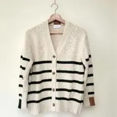 美品 ヒューマンウーマン【M】長袖ニット ボーダー ウール100% ゆったり