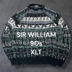 ビンテージ 総柄ニット ネイティブ柄 ハイネック ウール 青 白 L アメカジ