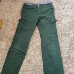 オリーブ色のカーゴパンツ、写真からみて右側に穴と左側に小さなシミあり。
