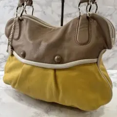 美品 サザビー ハンドバッグ ウール レザー 茶 ブラウン