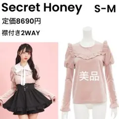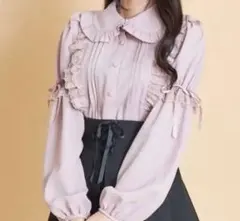 シークレットハニー ラッフルギャザー長袖ブラウス ピンク ビジューリボン 量産型