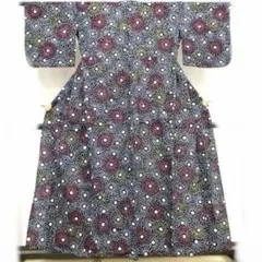 青色と白色の花柄模様の浴衣、綿素材。