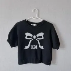 透かし編みニット M ホワイト 半袖ニット ラメ入り リボン カットソー