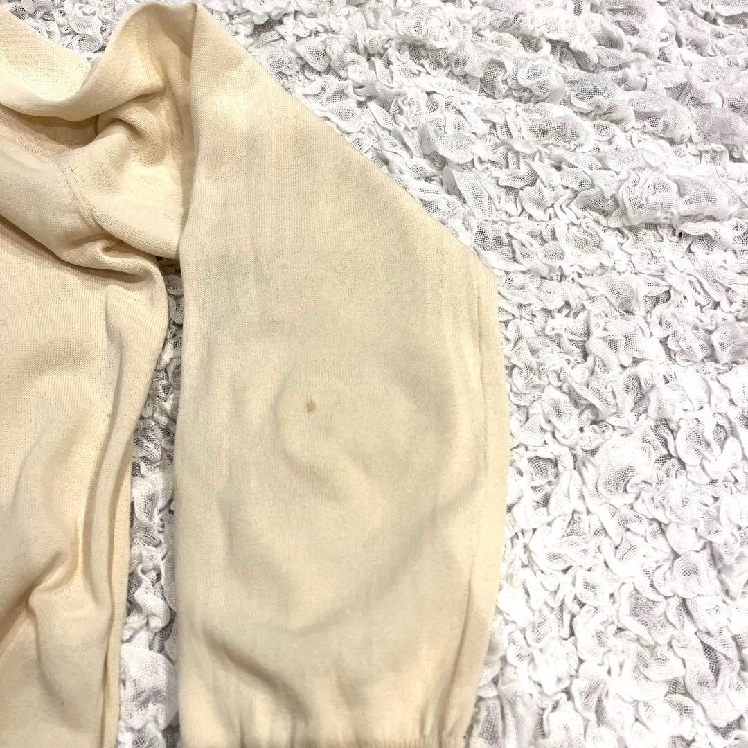 毛玉、色あせ等なく、比較的きれいな状態ですが、袖に1か所シミのようなものがあります。最後の画像参照してください。