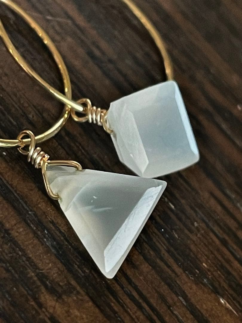 天然ムーンストーンのアシンメトリーゴールドフープピアスです。