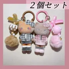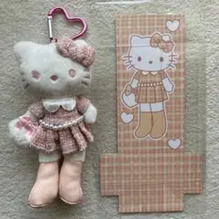 新品 ハローキティ ぬいぐるみキーホルダー ブラック パール リボン 脚長 ①