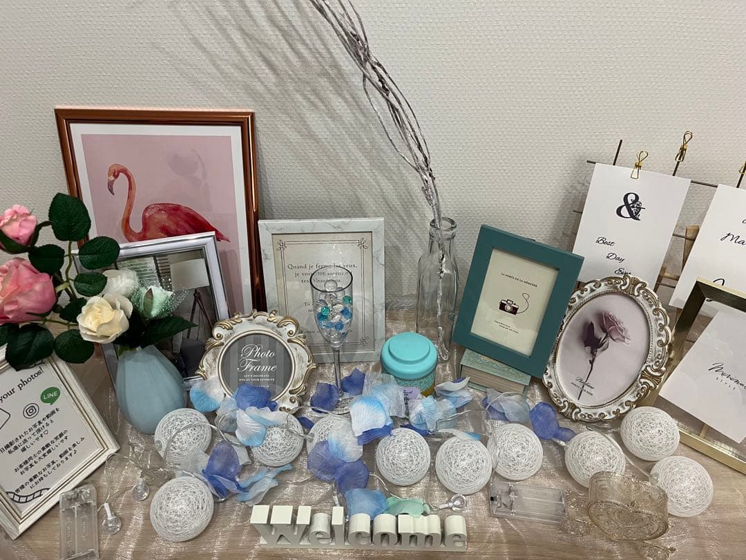 フレームや造花、ライト、オブジェなど全て揃っているので、届いたその日からすぐに飾り付け可能です!