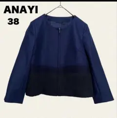 ◆アナイ【M】ノーカラージャケット ウールジャケット 花柄刺繍入り キレイ目