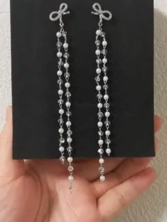 大人可愛いリボン×クリアストーンのピアスです♡