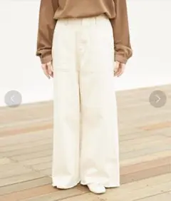 折り返しデザインがアクセントのワイドチノパンツ。