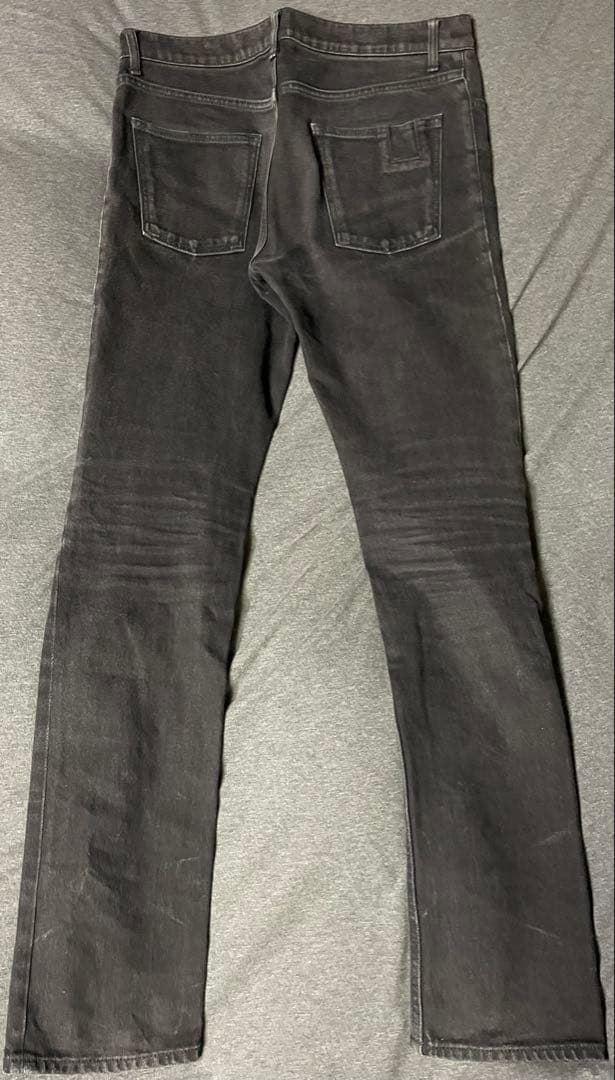 2本ともリベットが2つ付いており、ウエストのサイズ調整が可能(W31-32)。ポリウレタン混合で伸縮性がある履きやすいパンツです。