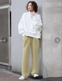 トップスはデザイン性が高いのでボトムはシンプルに合わせるのがマッチします。