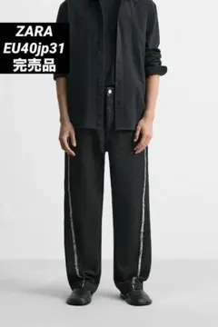 フェード加工のグレーのデニムワイドレッグパンツ。